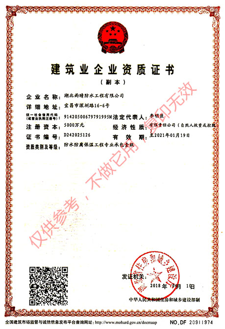 -國家防水防腐保溫工程專業(yè)承包壹級(jí)資質(zhì)